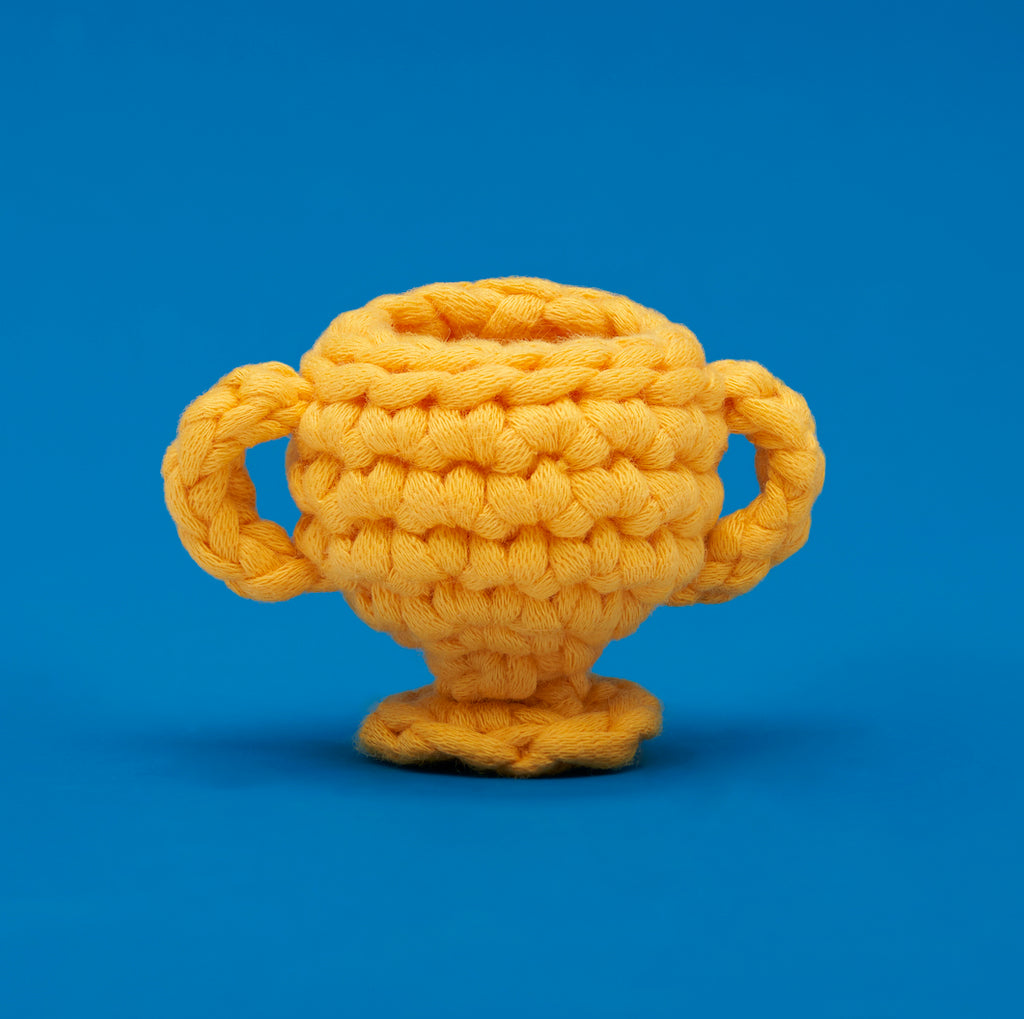 Looking for a T-rexcellent way to show your team spirit? We’ve got you covered with this T-rrific Touchdown Bundle! With a Tiny Football, Tiny Trophy, and a-roar-able T-Rex, you’ll be wooblin’ your way to a win in no time. As a Beginner kit, the wee lil’ football is the perfect way for rookies to warm up before leveling up to the Beginner+ skills of Fred the Dino and his T-riffic trophy. Plus with our Easy Peasy Yarn™ and step-by-step videos, you’ll soon be saur-ing to victory. So grab your hook and get ready to party like it’s 1999 B.C., ’cause this T-rrific Touchdown Bundle is pure dino-mite!