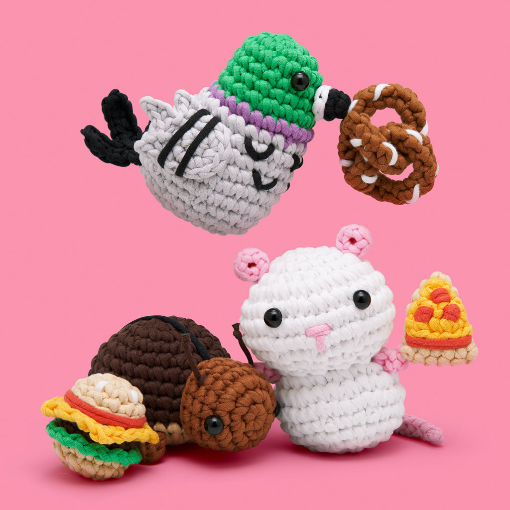 This urban-tastic bunch boasts a busload of amazing details that really scrape the sky when it comes to towering cuteness. So hop right in with Martha the Pigeon, Charlie the Roach, and Tony the Rat, then wooble up those city-rrific snacks: a Tiny Pretzel, Tiny Burger, and Tiny Pizza. Oh, and don’t worry, ’cause with only Beginner and Beginner+ skills on the map, you’ll have no problem navigating your way straight to legendary Woobler status. So grab some Easy Peasy Yarn™, turn on our step-by-step videos, and get ready to bring these unforgettable Urban Legends to life!